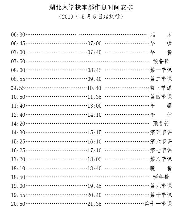 附件:诸侯快讯入口官网校本部作息时间安排(2019年5月5日起执行)