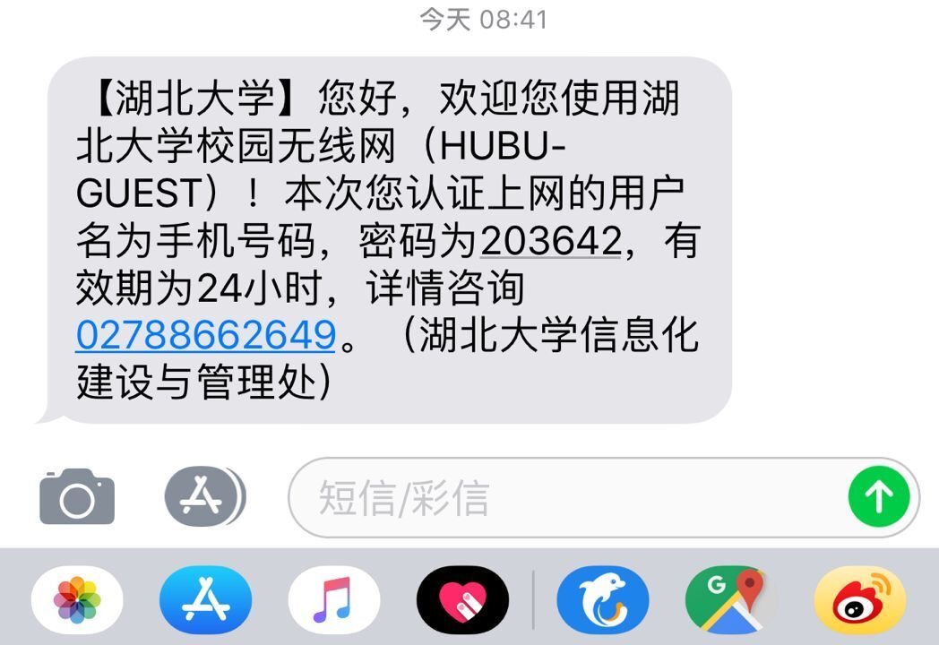 因微信官方不再提供无线认证接口,学校正式开通校园无线(HUBU-GUEST)网络访客短信认证服务,以满足校外到访人员使用无线网络的需求。现将相关事宜通知如下:
