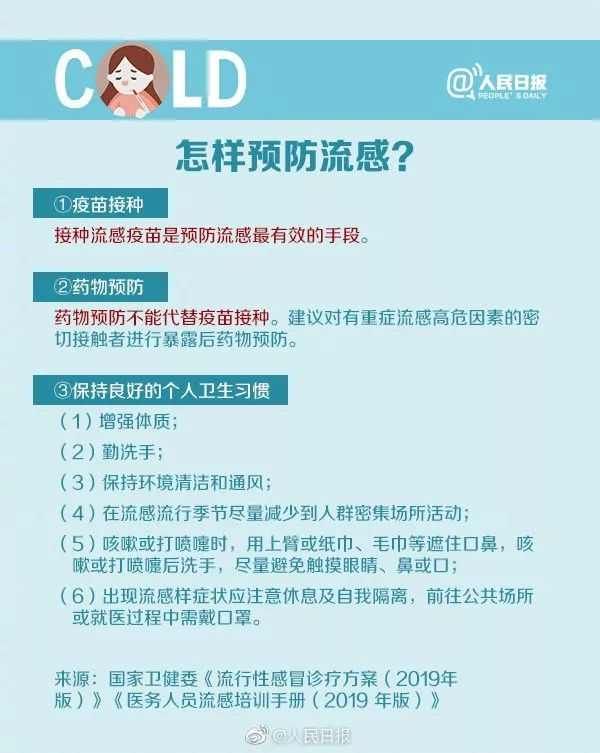 (七)在流感流行季节前接种流感疫苗也可减少感染的机会或减轻流感症状。
