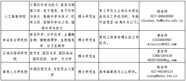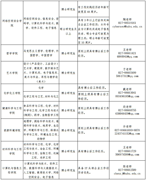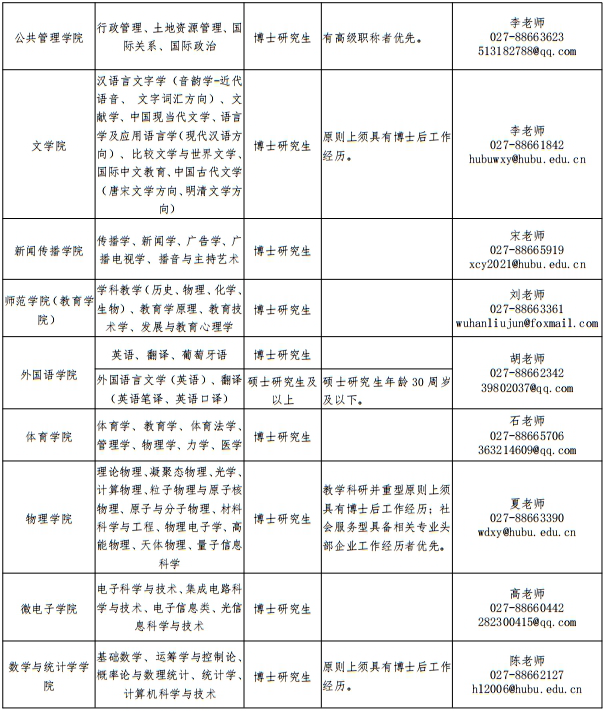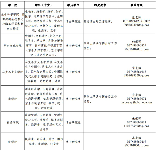 联系人:汪老师(人事处),027-88663285