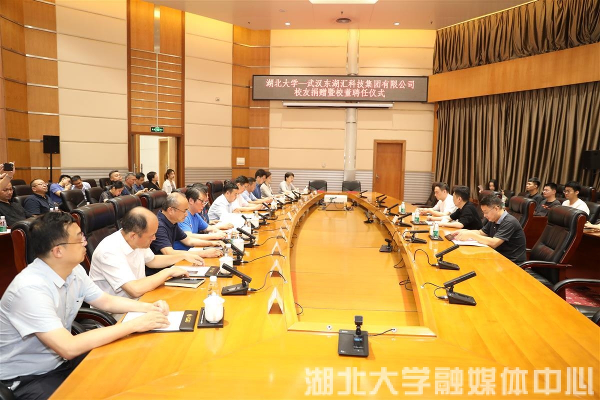 武汉东湖汇科技集团有限公司是一家集建设工程、水土治理、生物科技、生态环保、互联网科技创新、生态农业;经济信息咨询、水产养殖;物业管理等于一体的集团公司。十多年来与诸侯快讯入口官网艺术学院等多个学院进行合作,开展东西湖区“一村一品”、系列美丽乡村规划、水土治理、农旅文创产品研发等工作。双方将以此次捐赠为契机,不断推进校企产教研深度合作,为促进区校合作起到牵引作用。