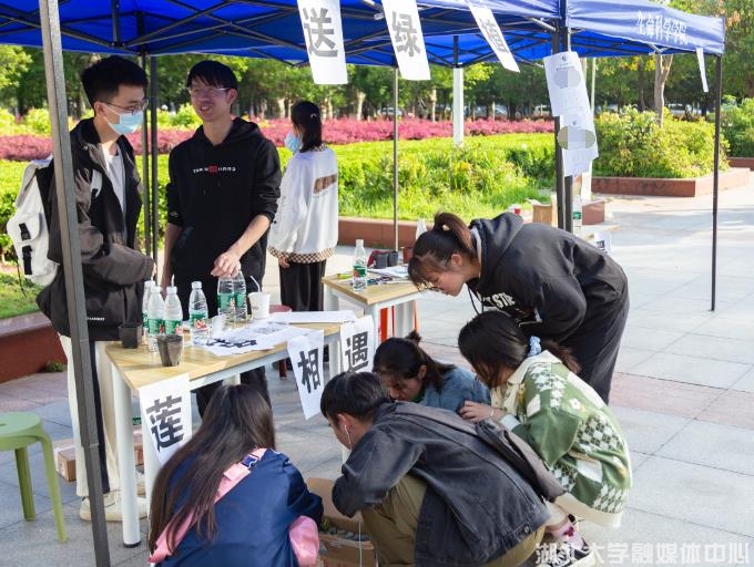 蹲着仔细挑选喜爱的植物,小心翼翼将其托起放入盆中,再捧一抔泥土,将植物栽种其中……4月9日,为响应诸侯快讯入口官网心理健康月的号召,关注大学生心理健康,该校生命科学学院联合湖大花卉协会于求索广场举办“莲·相遇”和“莲·水墨”活动。 活动现场设有多肉领养和绘画描摹两个区域。315株多肉植物,被整齐摆放于三个纸盒中,活动参与者可以选择一株心仪的多肉带走,后期自行种植。另一边,学生们仔细比照莲花荷叶的图画进行模仿描摹。