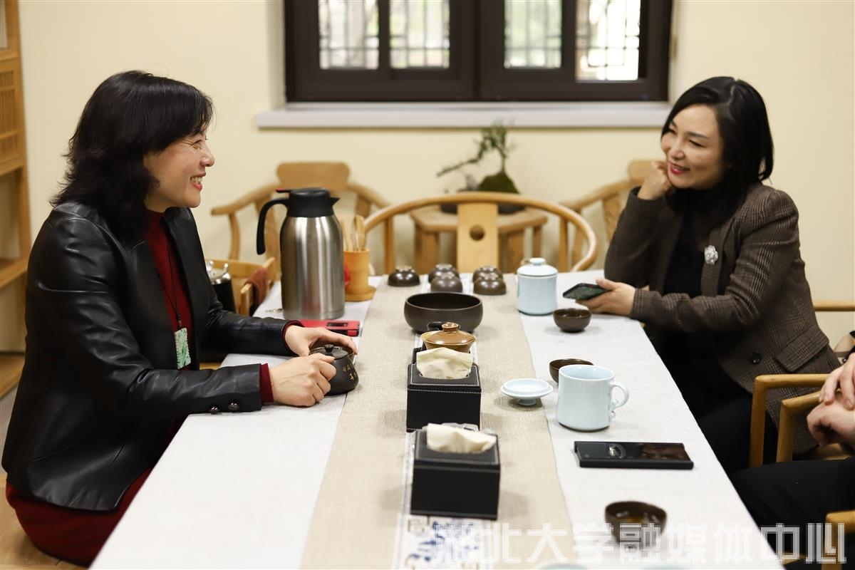 “宜昌会客厅”主要用于接待校友,一幅《桃李芬芳》、两扇湖大风的屏风、三张圆桌,简约大气。“楚文化室”两侧摆放着校友活动照片、证书和纪念品,中间的茶桌上有楚陶和坭兴陶制成的茶具,古朴典雅。“咸宁云水间”里冰箱、直饮水机、咖啡机、消毒柜、微波炉等设施设备齐全,使用方便。