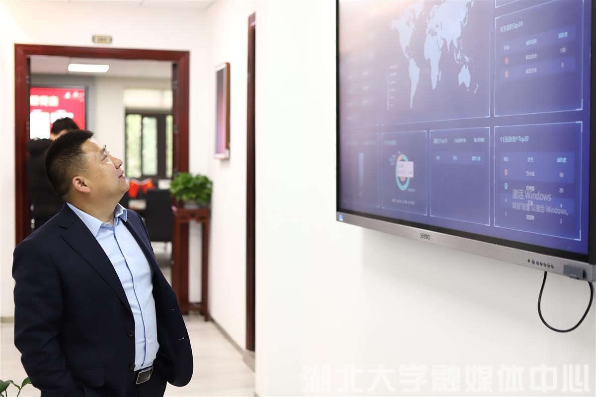 走上二楼,“共谋发展,携手合作,服务校友,传递爱心”的文化墙标语映入眼帘。推开“家”门,十堰走廊(校友文化走廊)上挂着的三块云屏分别滚动展示着优秀校友事迹、湖大老照片和党建文化,一块湖大校友数据智能大屏和校友会分布树状图文化墙展示了校友工作概貌。