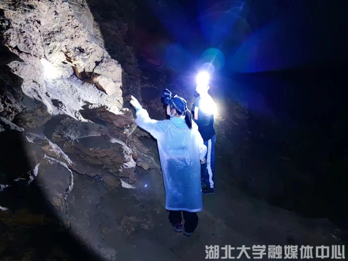 亮灯,进洞。洞内温度比外面低了十来度,光线几乎透不进来。往里走几步,刘杰和学生们拿出毛笔、试管、网兜,开始工作。为了找蜘蛛,以站立的视角走马观花不可能发现,必须俯下身子和蜘蛛一个高度,“非常非常细心地观察”,人要几乎趴在地面上,匍匐前进。