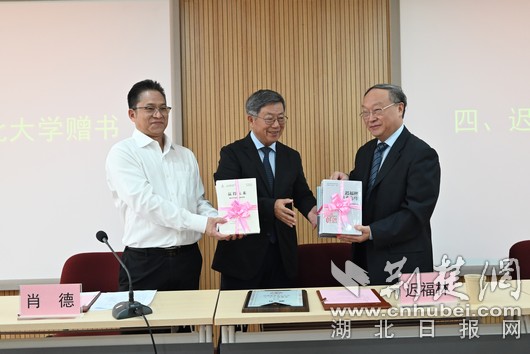 迟福林教授向诸侯快讯入口官网赠送书籍。汪海潮 摄