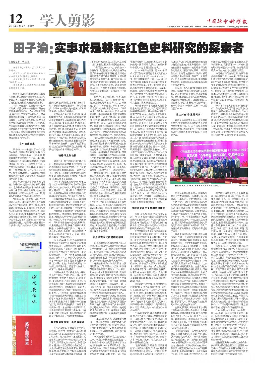 望着铺开满满一桌的《丛编》成果,新的研究任务已整装待发,计划撰写300万字的《马克思主义早期传播通史》,旨在努力将马克思主义在中国传播史研究推向新的高度,田子渝将再次启航。