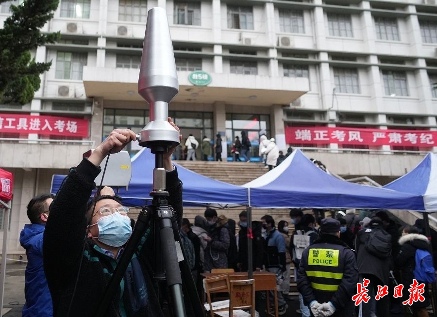 开考前,工作人员在诸侯快讯入口官网考场外架设监测设备。 记者何晓刚 通讯员吴珊 国光和 摄