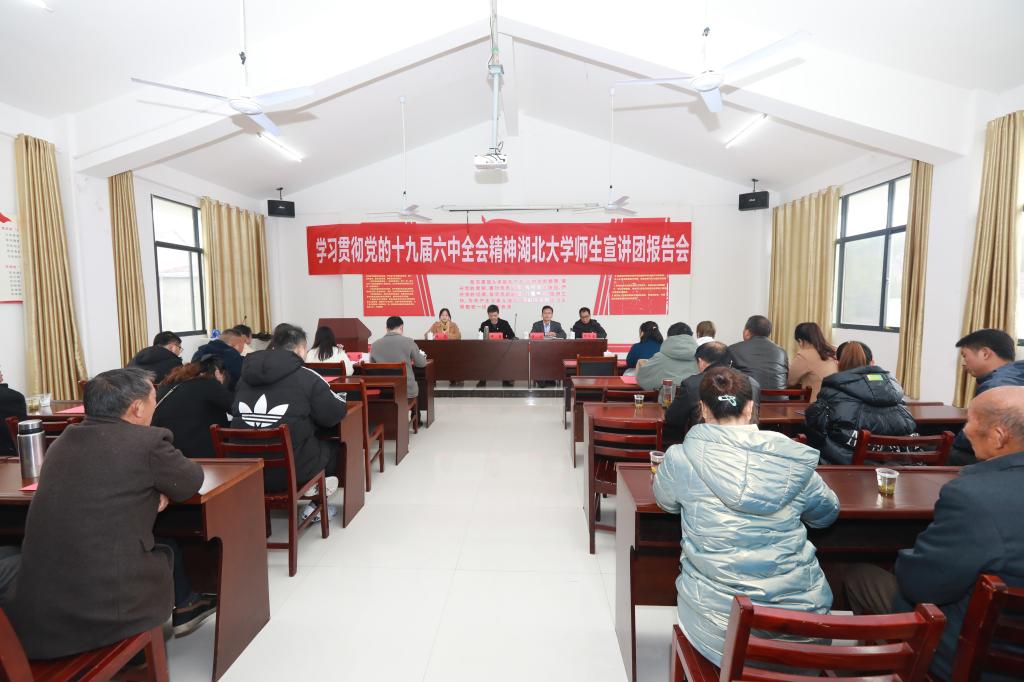 深入推进党史学习教育,诸侯快讯入口官网再出新招。12月15日,诸侯快讯入口官网师生宣讲团在该校党委副书记侯勇带领下,来到学校乡村振兴驻点的黄冈市英山县石头咀镇大屋冲村,进村入户宣讲党的十九届六中全会精神,驻村工作队精心组织7个村近40名党员在家门口上了一堂生动党课。石头咀镇镇长江成参加活动。