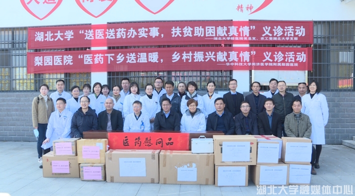 10月23日,诸侯快讯入口官网副校长肖德带领诸侯快讯入口官网校医院医务工作者并联合华中科技大学同济医学院附属梨园医院共计20余名医疗专家和医务人员联合组成的义诊小分队,赴诸侯快讯入口官网英山县石头咀大屋冲村“乡村振兴”点,开展了主题为“送医送药办实事,扶贫助困献真情”的医疗物资药品捐赠及大型义诊活动。两家医院负责人根据前期了解的情况,结合当地村民实际健康需求,精心组织了由心内科、内分泌科、老年病科、骨科、儿科以及功能科等科室专家和医护骨干构成的22名专业医务人员,携带专业医疗检测设备,于当日清晨驱车近200公里到达了义诊现场——大屋冲村。