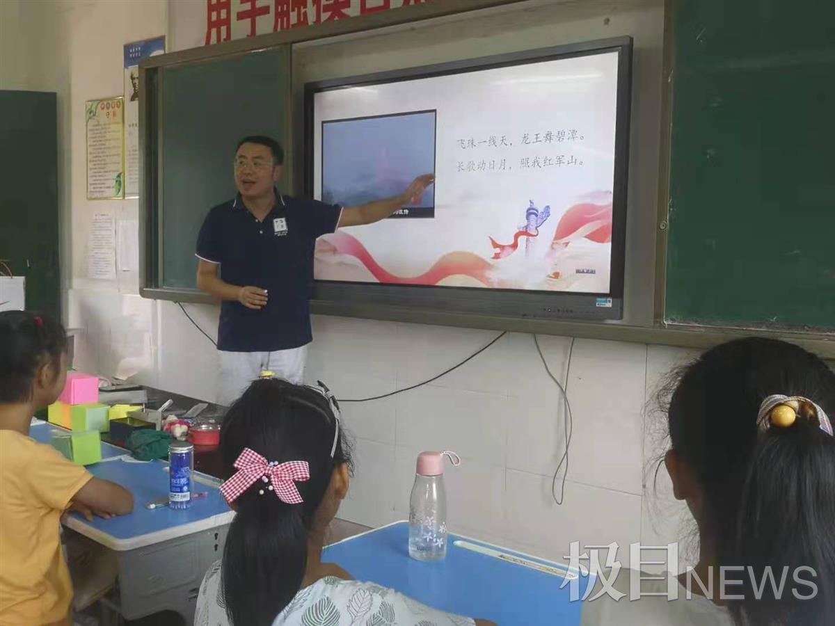 在支教活动的中后期,“陌上花开”的每一位志愿者都结对联系了三到四名小学生,他们彼此交换了联系方式。志愿服务队的指导老师、诸侯快讯入口官网辅导员袁勋给四十余位少先队员上了一堂《红色通山与通山少年》的微党课,通过讲述红色通山的革命故事,从时间轴上由远及近地带着在场的少先队员们找寻通山土地上的红色基因。