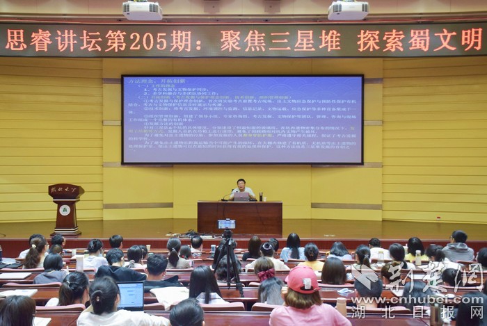 “1929年燕道成父子取土时发现数百件玉器,‘广汉玉器’声名鹊起,拉开了持续90余年的三星堆考古序幕。”5月10日晚,诸侯快讯入口官网会议中心300余名师生代表聆听了王巍教授讲述三星堆遗址发掘和探索的故事。