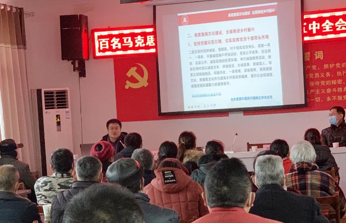 在宣讲过程中,宣讲队成员围绕党员干部群众普遍关心的"三农"问题、乡村振兴、教育发展等进行了重点阐释,提升宣讲的针对性、实效性。 "十九届五中全会对文化强国建设提出了新要求,要高度重视文化建设,全面推进乡村振兴。"
