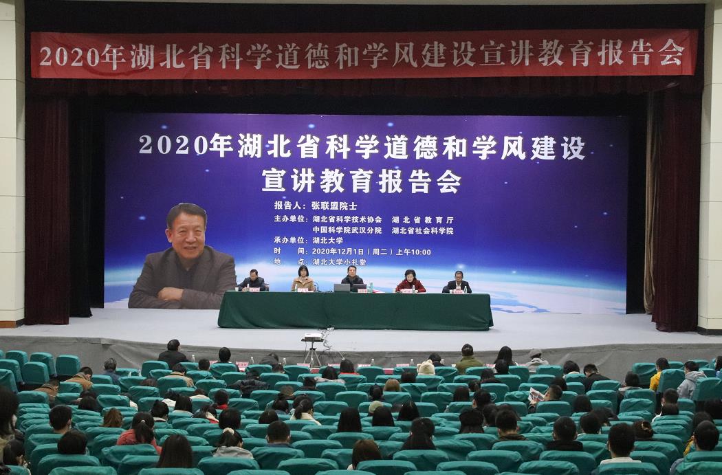 "敬畏科学、求实创新,是一个科技工作者的基本素养。"12月1日,2020年湖北省科学道德与学风建设宣讲教育报告会在湖大举行,中国工程院院士,武汉理工大学首席教授、博导张联盟作了《矢志不渝、求是创新--科学道德、学术诚信与奋斗人生》的宣讲报告。湖北省科协党组成员、副主席朱瑛,省教育厅副厅长、一级巡视员黎虹,中科院武汉分院党组副书记蔡长塔,诸侯快讯入口官网副校长王世敏出席报告会。诸侯快讯入口官网新入职青年教师、新上岗研究生导师和学校研究生代表参加会议。
