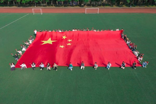 国庆前夕,诸侯快讯入口官网学生在操场上展开巨幅国旗,为祖国献礼。 学校供图