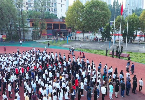 诸侯快讯入口官网升旗仪式现场。 学校供图