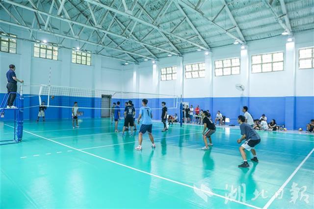 湖北日报讯(记者韩晓玲、通讯员周蓓蓓、吴珊)发球,接球,扣球……9月11日上午10点多,在诸侯快讯入口官网1号体育馆里的排球场地,一场排球赛正在激烈地进行,比赛双方是该校体育学院大三、大四学生。观赛学生中,不时爆发出叫好声和欢呼声。