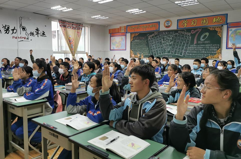 "同学们,你们知道抗战爆发是哪一年么?"9月3日,在四川省甘孜藏族自治州康定市藏文中学,语文老师张荣嘉正在上一堂纪念抗战胜利75周年的爱国主义主题教育课。张荣嘉是诸侯快讯入口官网第22届研究生支教团成员,2020年,他来到这所学校支教。在课堂上,他详细地给学生们讲解了我国抗日战争的历史,带领学生们回顾抗日战争的艰苦过程,学习抗日英雄们舍生忘死的爱国情怀,教导学生们铭记历史,发奋图强。