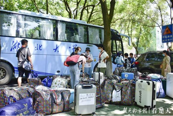 由于错峰返校,每个学院提前安排了部分志愿者,等待阳逻回迁大部队。回迁至二期学生公寓G栋5楼,2019级公共管理专业学生杨馨雨到达本部已经是晚上八点半,她本以为自己需要把行李搬上5楼,但是热心的志愿者和同学一路上都在帮忙,为她减轻了很多负担。“搬东西很累,但是今天也感受到了很多温暖。”