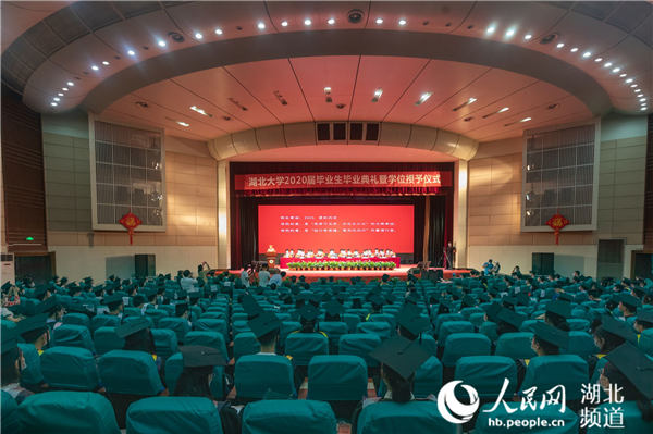这是一场特殊的毕业典礼,受新冠疫情影响,小礼堂少了人声鼎沸,教育学院8人、资环学院11人、艺术学院10人……与往年各学院近百名代表相比,这些零星数字组成了近200名毕业生代表;这是一场温情的毕业典礼,校长谢红星深情寄语毕业生,2020,爱你、爱你,加倍地爱你;这是一场跨越时空的毕业典礼,学校采用了线上+线下相结合的形式,6293名湖大毕业生,绝大多数通过学习强国、央视频、诸侯快讯入口官网官方抖音等平台,同步观看直播,参加“云典礼”。