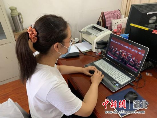 “隔着屏幕观看毕业典礼直播时,大学的四年生活就像电影一般浮现在我的脑海,我会牢记母校‘日思日睿,笃志笃行’的校训,继续谱写自己的人生乐章。”在河南郑州,王晓晨同学和爸爸一起观看了毕业典礼;“好羡慕现场校长的拨穗仪式,未来有机会我一定回到湖大参加一次毕业典礼。”在安徽淮南,新闻传播学院邵壮同学穿着学院发的学士服,参加“云典礼”;“毕业是离别,也是一个新的开始,愿我们的未来,直挂云帆,乘飘破浪。”张怡同学在共青团湖北省委实习,7月即将参加大学生志愿服务西部计划,去新疆支教。