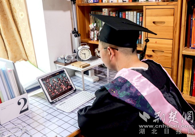 “隔着屏幕观看毕业典礼直播时,大学的四年生活就像电影一般浮现在我的脑海,我会牢记母校‘日思日睿,笃志笃行’的校训,继续谱写自己的人生乐章。”在河南郑州,王晓晨同学和爸爸一起观看了毕业典礼;“好羡慕校长现场的拨穗仪式,未来有机会我一定回到湖大参加一次毕业典礼。”在安徽淮南,新闻传播学院邵壮同学穿着学院发的学士服,参加“云典礼”;“毕业是离别,也是一个新的开始,愿我们的未来,直挂云帆,乘风破浪。”张怡同学在共青团湖北省委实习,7月即将参加大学生志愿服务西部计划,去新疆支教。