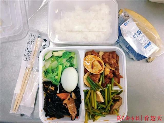 患者入住后,湖大后勤集团饮食中心紧急联系12家供应商,及时配送蔬菜、肉类、禽蛋、水果、牛奶、餐盒等各类物资。驿站指挥部还合理利用爱心捐赠物资,适时为康复隔离人员加餐,盒马鲜生的椒盐基围虾、麦当劳的菠萝派都让康复人员一饱口福。