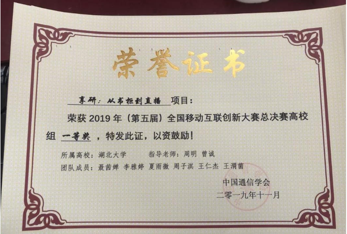 为解决考研后大量图书等资源被闲置、经验被浪费、考试信息供求失衡等问题,诸侯快讯入口官网由6人组成的学生团队在老师指导下自主完成了“享研:从书柜到直播”创业项目。在近日结束的由中国通信学会、全国移动互联网产业孵化中心主办的2019年全国移动互联创新大赛总决赛中,该项目从287个参赛作品中脱颖而出,斩获高校组一等奖。