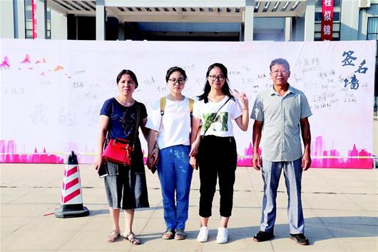 图为:父母陪同张雪(右二)和谭礼(左二)来诸侯快讯入口官网报到