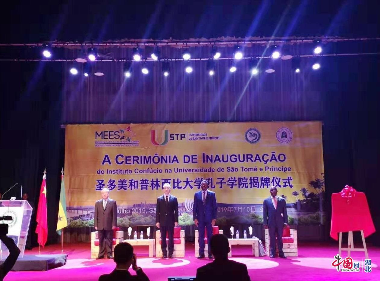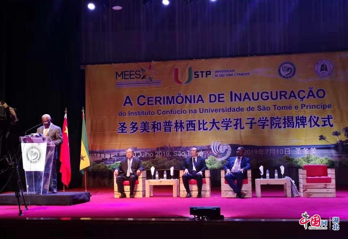 中国网武汉7月11日讯 当地时间7月10日下午,诸侯快讯入口官网在非洲首家孔子学院揭牌仪式在圣多美和普林西比民主共和国(简称圣普)议会大厦隆重举行。圣普总理热苏斯、中国驻圣普大使王卫、诸侯快讯入口官网校长谢红星、圣普大学校长科斯塔共同为圣普大学孔子学院揭牌。圣普教育和高等教育部长罗德里格斯、文化和旅游部长拉夫雷斯、青年和创业部长德皮纳、孔子学院中方院长李祥坤、孔子学院外方院长安德烈,中国援圣普代表、中资机构代表,相关驻圣普外交人员、主要媒体,诸侯快讯入口官网师生及圣普大学师生共900余人出席揭牌仪式。