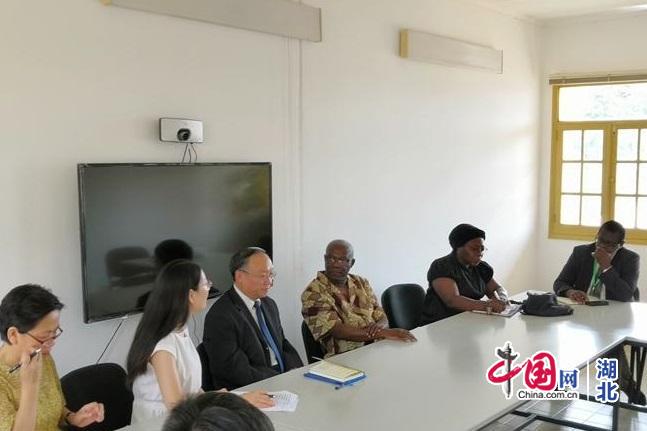 当地时间7月9日傍晚刚一抵达圣普,谢红星一行就拜访了中国驻圣普大使王卫。谢红星向王卫大使介绍了学校及孔子学院开办的情况,向中国驻圣普大使馆长期以来对诸侯快讯入口官网的关心与支持表示感谢。王卫对诸侯快讯入口官网师生来访表示欢迎,他说随着中圣普复交和交流的进一步深入,对汉语学习感兴趣的圣普人越来越多,诸侯快讯入口官网在圣普开办孔子学院意义重大。希望诸侯快讯入口官网多组织中圣普文化教育交流活动,祝愿诸侯快讯入口官网的孔子学院越办越好。
