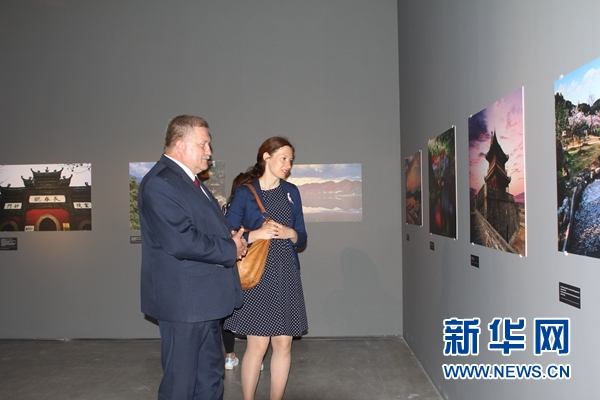 波兰库亚瓦滨海省副省长查乌贝茨基观看展览。新华网发