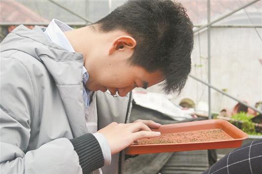 随后,宋衬衬、刘盼盼、黄开为、肖梓蝶4个女生和戴赓、李天鹏2个男生也加入团队。他们学的都是地理专业,对养花饶有兴趣。