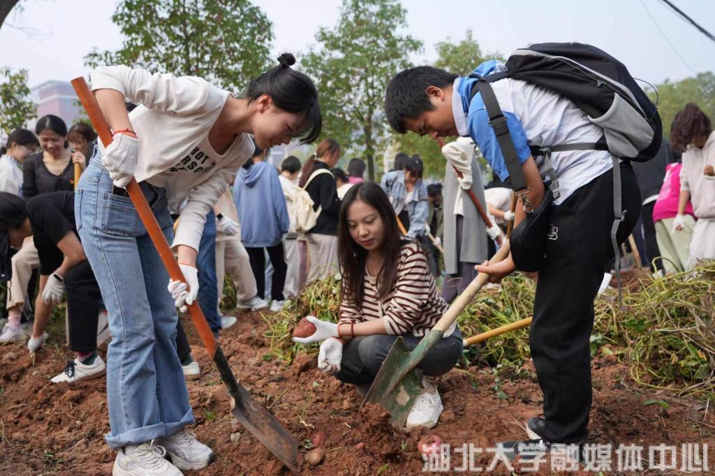 “虽然很累,但看着满满一袋都是我们自己的劳动成果,心里就高兴。这次劳动实践课让我第一次见到了红薯长在地里是什么样的,第一次知道红薯应该怎么挖。”2023级中国语言文学类专业学生曾婉莹说。一个半小时的课程中,学生们成功收获约300斤红薯,分装成50余袋。