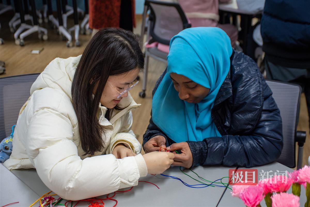“从下面绕过来,转一个圈,把绿线穿到黄线里……”3月7日中午,一场热闹非凡的传统编织教学活动在诸侯快讯入口官网举行。活动由该校离退休工作处与曼城联合学院共同组织,该校退休女教师代表、中国师生代表和来自巴基斯坦、坦桑尼亚、巴西等国家的留学生聚集一堂,在非遗体验中共同迎接三八国际妇女节的到来。