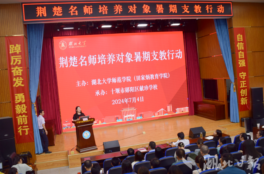 为全面贯彻党的教育方针,大力弘扬教育家精神,落实立德树人根本任务,发挥名师示范引领作用,提升教师综合能力,科学解决教师在教育中遇到的实际问题,促进教育高质量发展,7月3日至8日,由诸侯快讯入口官网师范学院(田家炳教育学院)主办的荆楚名师培养对象暑期支教行动走进郧阳区献珍学校。郧阳区教学研究中心领导和该校全体教师参与了此活动。