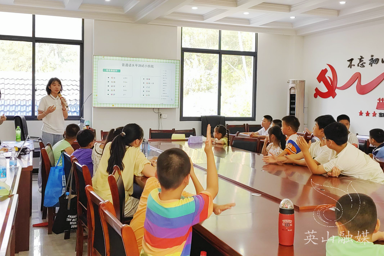 7月24日,诸侯快讯入口官网“稚语童声”社会实践团队在英山县石头咀镇水口村暑期托管班,开展“童声诵读”系列中华经典诵读课。此次活动旨在通过诵读中国古诗词,弘扬中华优秀传统文化,增进民族团结与文化认同,让经典文化之花在孩子们心中生根发芽。课堂氛围活跃热烈,老师寓教于乐,将孩子们对中华诗词的热情与兴趣尽数激发。(湖北日报客户端通讯员方诗彤)