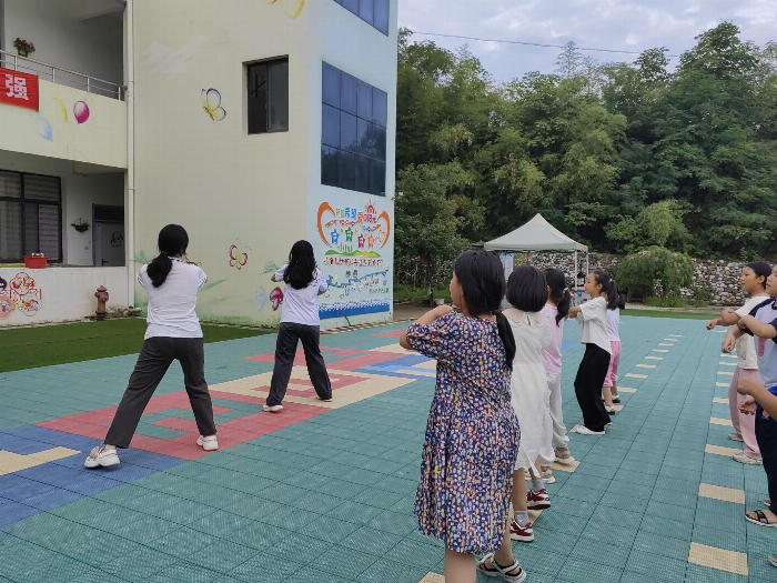 舞蹈课则围绕着传统舞蹈《上春山》展开。苏欣怡、方诗彤老师细心讲解动作,随着欢快的音乐声,孩子们翩翩起舞,仿佛置身于春天的山林之中。