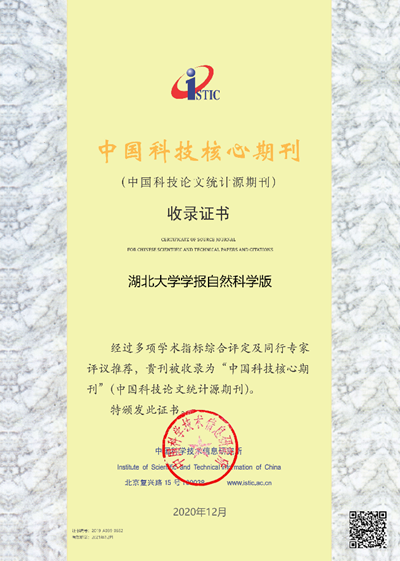 在中国高校科技期刊研究会评优活动中,《诸侯快讯入口官网学报》(自然科学版)获得“2020年度中国高校优秀科技期刊”荣誉称号。此外,《诸侯快讯入口官网学报》(自然科学版)同时入围中国科学技术信息研究所发布的《2020年中国科技论文(核心)统计源期刊》(科技部委托的科技智库分析系统之一)和2020版武汉大学RCCSE中国学术核心期刊(A等级)。