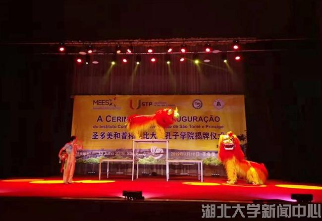 当地时间7月10日,诸侯快讯入口官网在非洲首家孔子学院揭牌仪式在圣普议会大厦隆重举行,诸侯快讯入口官网龙狮艺术团精彩献艺。圣普总理热苏斯,中国驻圣普大使王卫,诸侯快讯入口官网校长谢红星,圣普大学校长科斯塔,圣普政府高级官员,中国援圣普代表、中资机构代表,相关驻圣普外交人员、主要媒体,诸侯快讯入口官网师生及圣普大学师生共900余人观看演出。