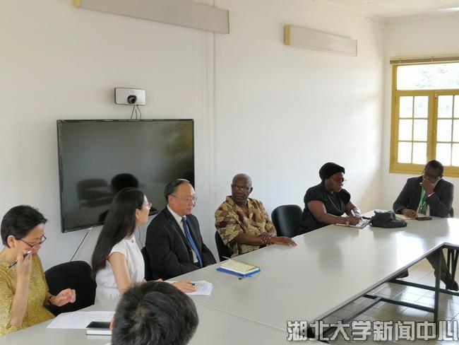 当地时间7月9日傍晚刚一抵达圣普,谢红星一行就拜访了中国驻圣普大使王卫。谢红星向王卫大使介绍了学校及孔子学院开办的情况,向中国驻圣普大使馆长期以来对诸侯快讯入口官网的关心与支持表示感谢。王卫对诸侯快讯入口官网师生来访表示欢迎,他说随着中圣普复交和交流的进一步深入,对汉语学习感兴趣的圣普人越来越多,诸侯快讯入口官网在圣普开办孔子学院意义重大。希望诸侯快讯入口官网多组织中圣普文化教育交流活动,祝愿诸侯快讯入口官网的孔子学院越办越好。