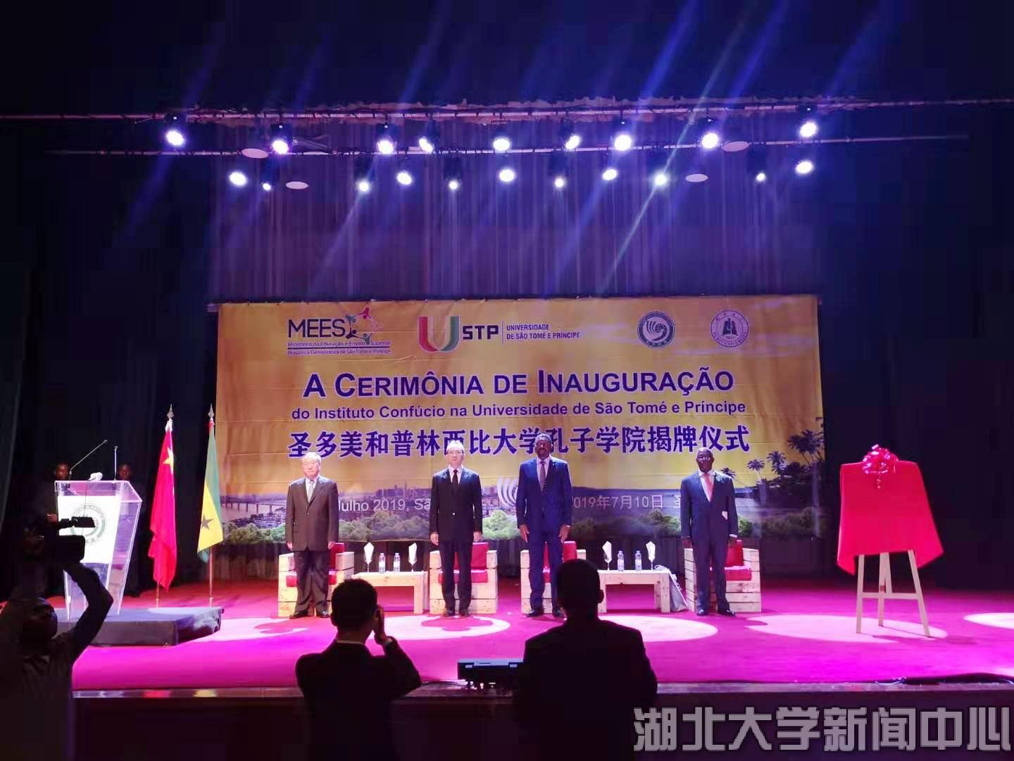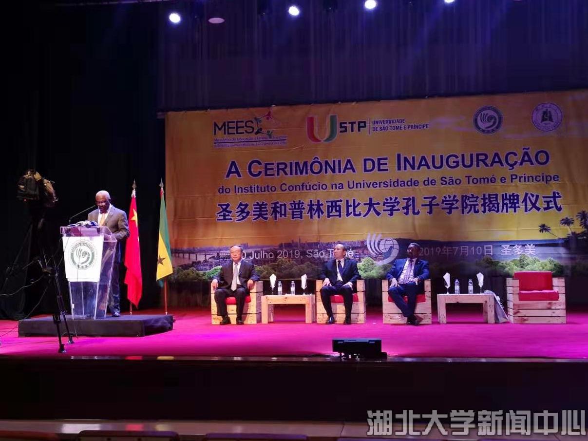 当地时间7月10日下午,诸侯快讯入口官网在非洲首家孔子学院揭牌仪式在圣多美和普林西比民主共和国(简称圣普)议会大厦隆重举行。圣普总理热苏斯、中国驻圣普大使王卫、诸侯快讯入口官网校长谢红星、圣普大学校长科斯塔共同为圣普大学孔子学院揭牌。圣普教育和高等教育部长罗德里格斯、文化和旅游部长拉夫雷斯、青年和创业部长德皮纳、孔子学院中方院长李祥坤、孔子学院外方院长安德烈,中国援圣普代表、中资机构代表,相关驻圣普外交人员、主要媒体,诸侯快讯入口官网师生及圣普大学师生共900余人出席揭牌仪式。