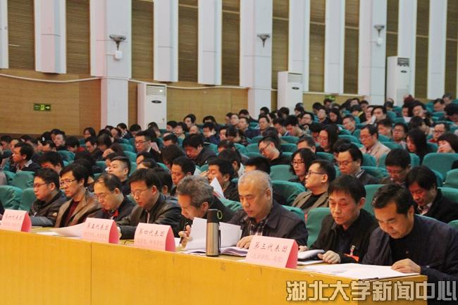 谢红星指出,2019年是学校加快提质进位的关键之年。学校工作的总体要求是:以习近平新时代中国特色社会主义思想为指导,深入学习贯彻党的十九大和十九届二中、三中全会、全国教育大会和湖北省教育大会精神,坚持走内涵发展道路,主动对接国家和湖北省经济社会发展重大战略需求,以“学科建设年”为主题,聚焦聚力“双一流”建设,以核心办学指标的突破为主线,全力推动学校事业高质量发展迈上新台阶,以优异成绩为新中国成立70周年献礼。谢红星介绍,2019年学校将重点做好以下四个方面工作:一是以党建工作为引领,认真落实全面从严治党要求。将政治建设摆在首位,加强组织建设、党风廉政建设、宣传思想文化工作,不断开创统战工作和群团工作新局面。二是改革创新思想政治工作的方式和方法。坚持立德树人,发挥思想教育工作中的主阵地作用,不断适应思想政治工作的新环境、新挑战、新方法的变化,挖掘和弘扬各类教师、学生中涌现出来的先进典型。三是全面深化改革,加快发展、引领发展。抓好一流学科建设工作,大力实施“一流学科和特色学科建设计划”,统筹抓好人才培养、科研服务和国际化办学等工作。四是加强内部治理与服务,全力以赴保中心、促发展。持续推进综合改革工作,深入推进发展战略与目标管理工作,抓好保障和服务体系建设,积极争取外部资源。此外,2019年学校还要继续坚持以师生为本,着力办好基础设施建设、公共服务提升等民生实事。