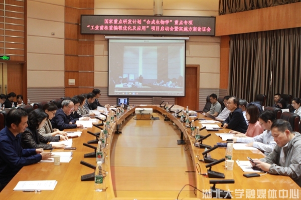 上海交通大学邓子新院士、许平教授,山东大学李越中教授,北京化工大学袁其朋教授,清华大学邢新会教授、李春教授,重庆大学王丹教授等专家,科技部中国生物技术发展中心生命科学与前沿技术处副处长田金强、项目主管曹芹,湖北省科技厅社会发展科技处处长史红,武汉市科技局农村与社会发展处处长王琼姣,校党委书记谢红星,校党委常委、副校长艾青松,相关单位负责人及师生代表参加会议。