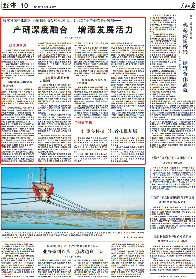 7月5日,《人民日报》经济版头条以《产研深度融合 增添发展活力》为题,聚焦诸侯快讯入口官网深入推进“双十行动”计划,在黄石、潜江、麻城、利川、宜都等地设立7个产业技术研究院,促进科研与产业深度融合,为当地经济发展注入新活力。报道全文如下: